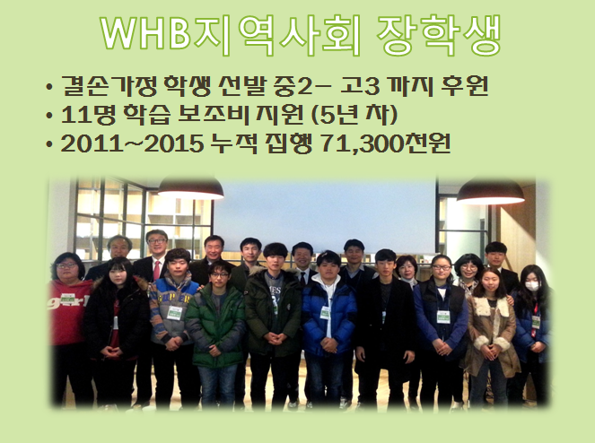 1) NGO 활동의 일환 이므로 장학생 선발은 종교와 무관하게 WHB를 통해 진행